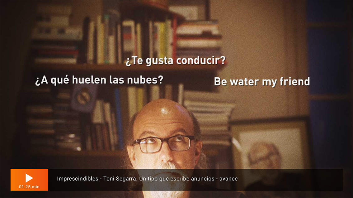 En 2016, el director José María Pinillo Bun, en coproducción con Bun Media, Catorce, TVE y Movistar, dirigió un documental sobre la vida profesional de Toni Segarra. El documental, titulado “Toni Segarra: un tipo que escribe anuncios”, se proyectó en salas de cine y se emitió en Movistar y en TVE.